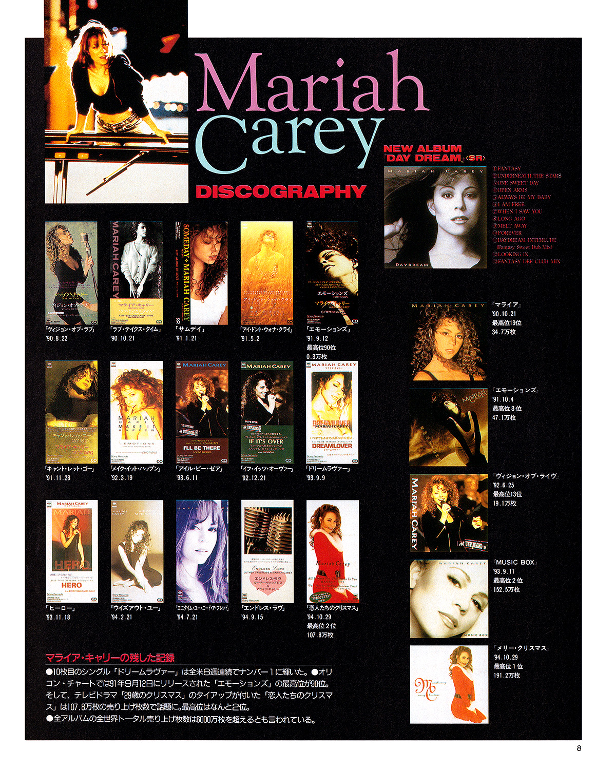 あぁ、なんかいい話。音楽的にも人間的にも、マライアは確実に成長している。そんな彼女のありったけのエンターテイメントと温かい心がこめられた『デイドリーム』、う~ん、完璧なポップ・アルバムですね。