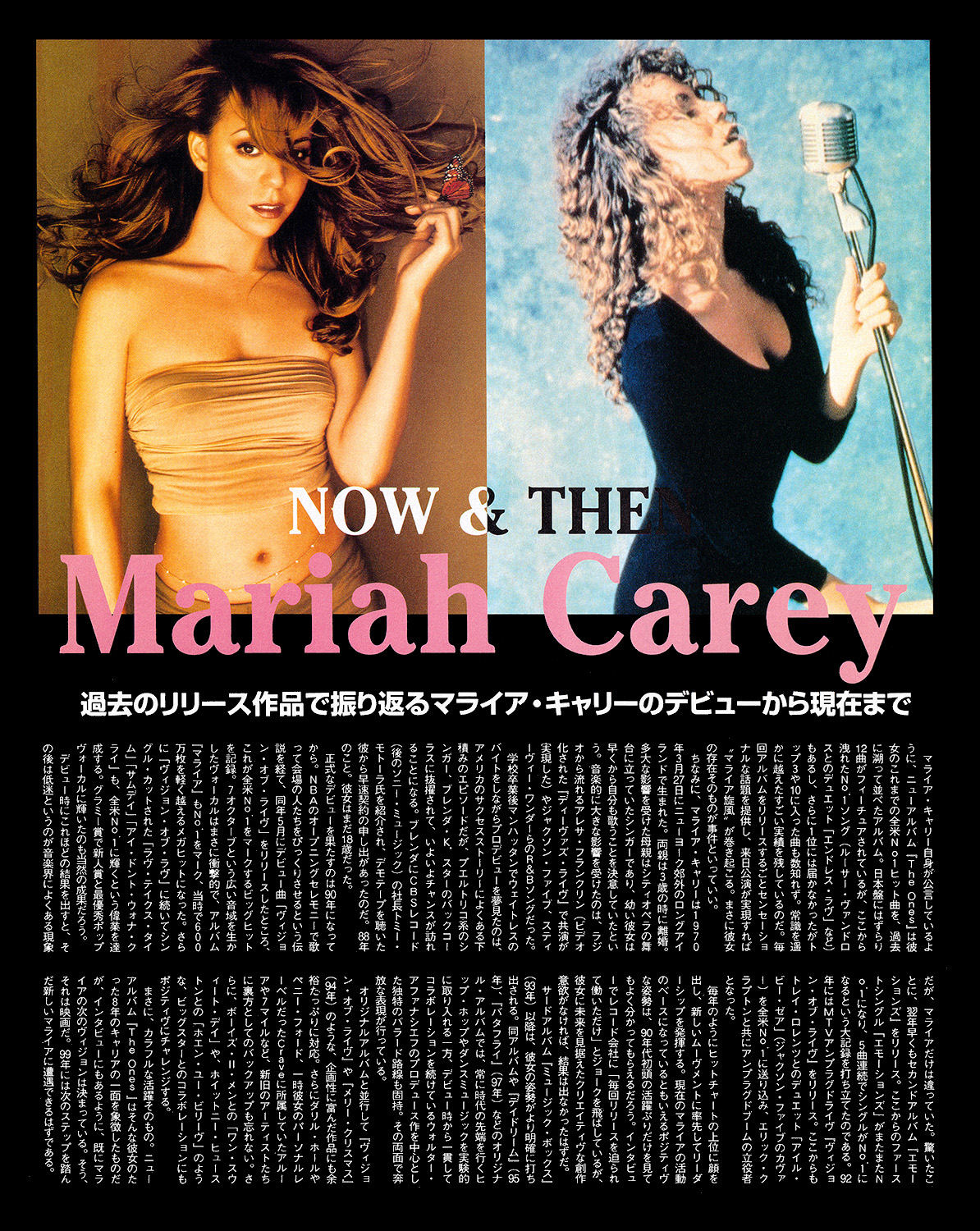 でも、2曲だけよ。一つはブレンダ・K、スターのリメイク曲(ニューアルバムにも収録された「アイ・スティル・ビリーヴ」)。私は彼女のバックシンガーだったから。ブレンダが来て昔話をしたり、それとブライアン・マックナイトも来てくれて、「ホエネヴァー・ユー・コール」を歌ったわ。TVスペシャルでやると思うけど、『マライア・アラウンド・ザ・ワールド』というタイトルになると思う。その番組では東京ドームやアロハスタジオのような何万人収容という大きな会場での私も、100人ぐらいを前にした私も見られるわけ。こっちは、友達とかレコーディングの関係者など50人ぐらいに声をかけてやったの。