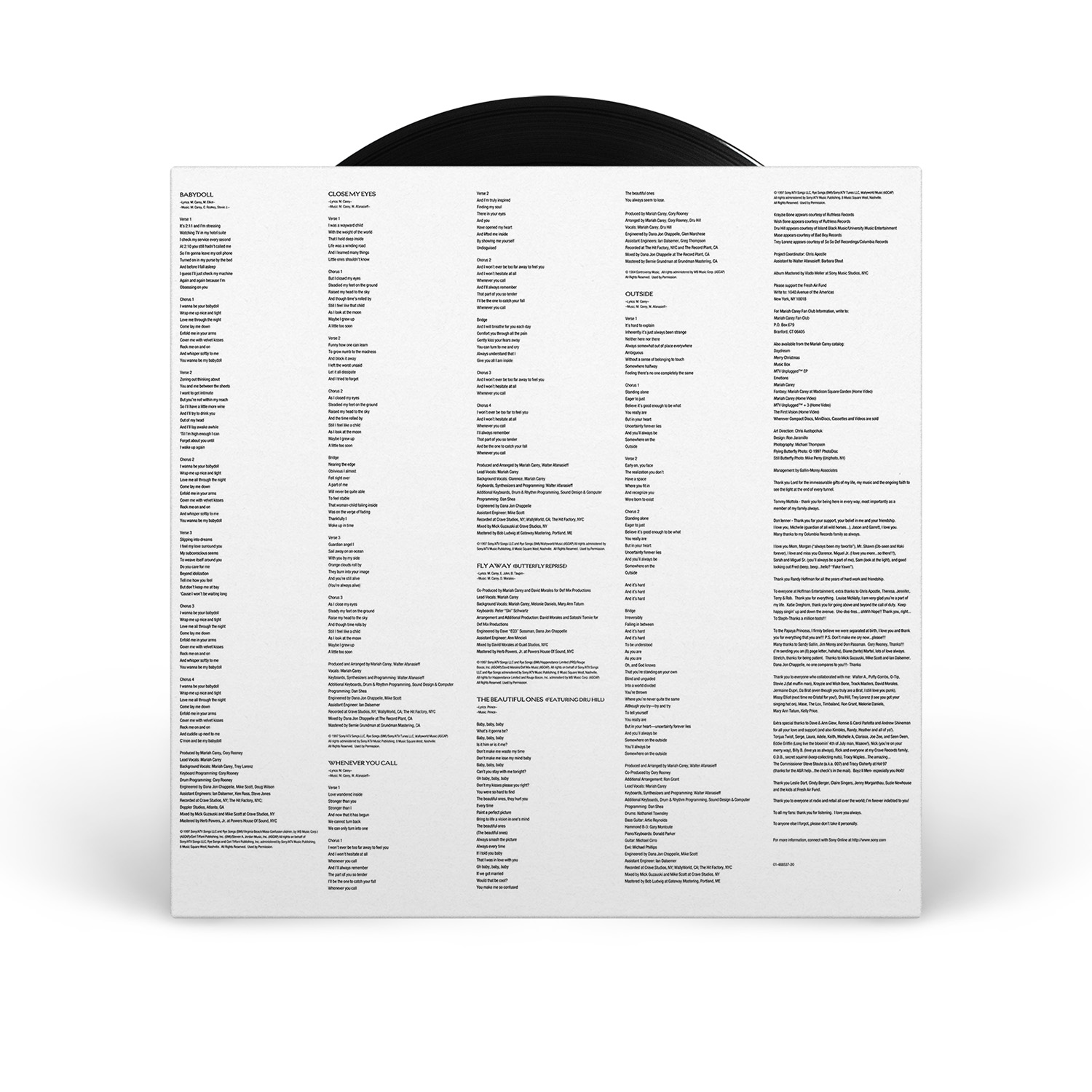 Mariah closed the album with “Outside.” “A lot of people could relate to it for a lot of different reasons,” Mariah told Molly Meldrum in 1997. “For me it was basically about being multiracial and feeling like I come from another planet because I never knew anyone in the exact same position as me in that way. And I know other people that are mixed, but somehow because of the way I look — because I'm kind of ambiguous looking, I could be anything really — the experiences that I've had made me feel like an outsider in a lot of ways in every situation that I'm in. Less now, but then things will turn up that will just kind of reinforce that inner feeling that rises every now and then.”