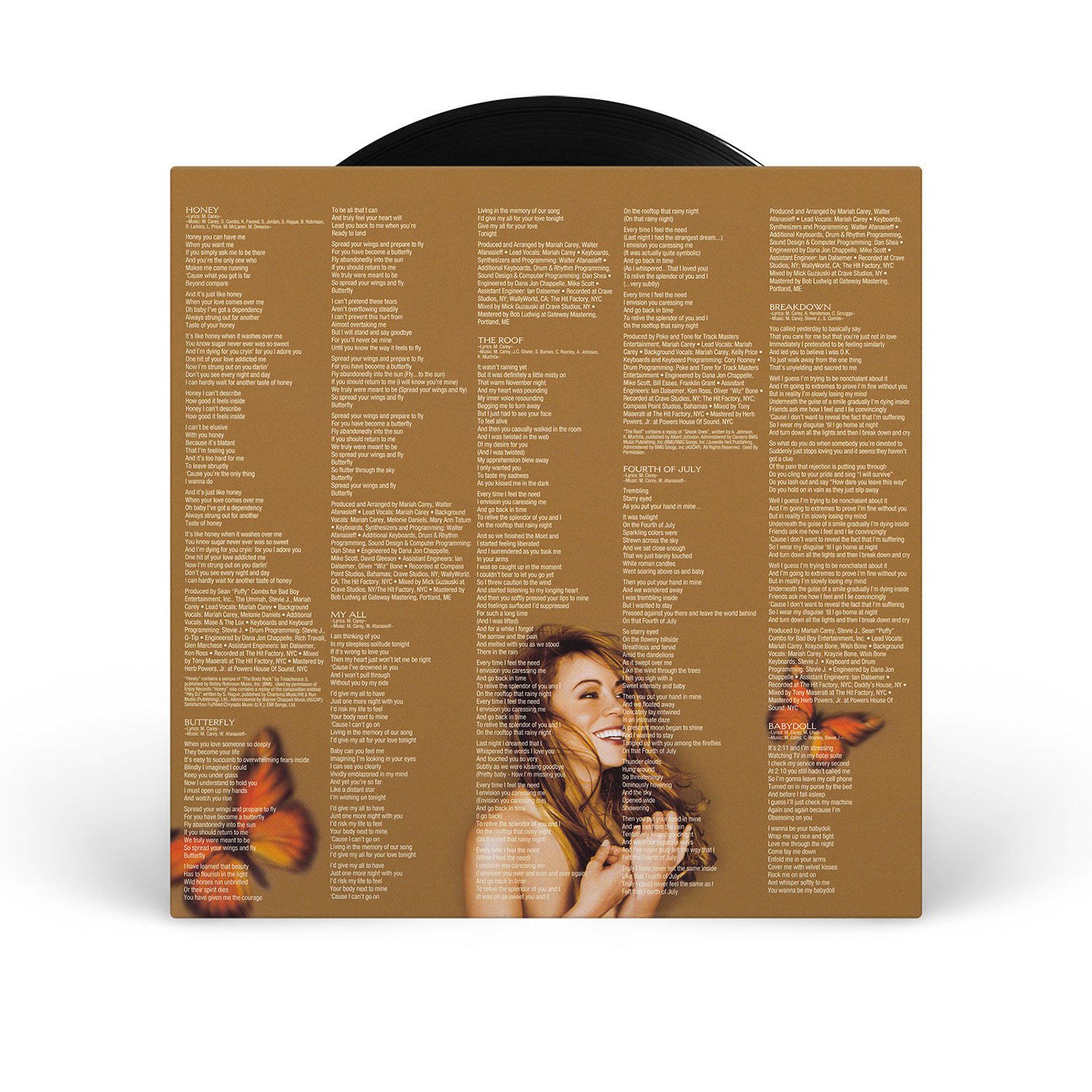 In the US, Butterfly was issued on CD, Cassette and MiniDisc. A specially priced value pack was also available, including the album on both CD and Cassette. International editions of Butterfly include two remixes of “Honey” as bonus tracks: the So So Def Radio Mix and the Def Club Mix. Europe also saw the album released on 12" Vinyl.