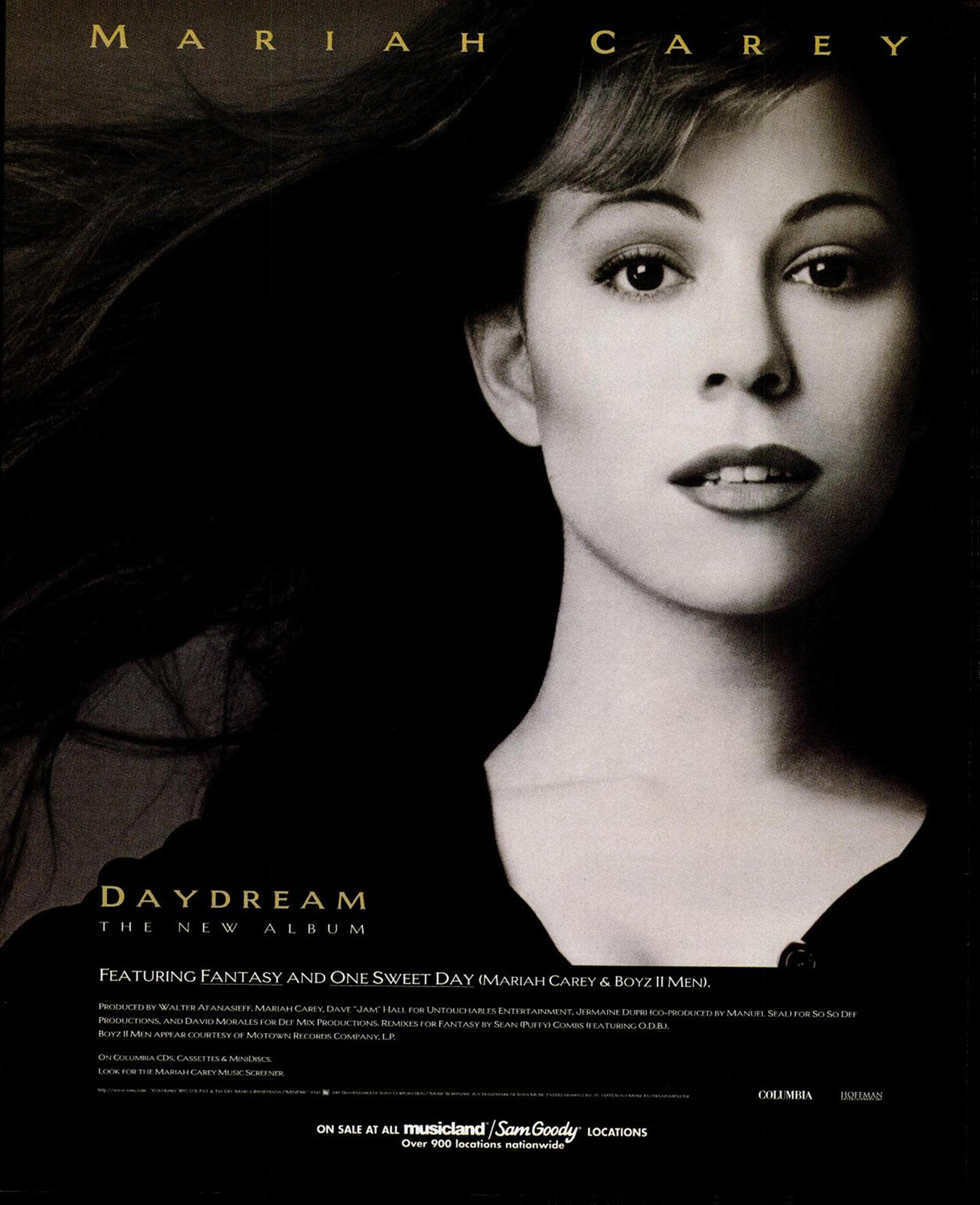Daydream's lead single was “Fantasy,” which Mariah co-wrote with Dave Hall, who she previously worked with on “Dreamlover,” in 1993. After being released on September 12, 1995, it became Mariah's ninth number-one single on the Billboard Hot 100 chart, and made chart history by becoming the first song by a female artist to ever debut at number one on the Billboard Hot 100, and the second single in chart history to enter at the top, after Michael Jackson's “You Are Not Alone.” “Fantasy” topped the chart for eight consecutive weeks and was certified 6X Platinum by the Recording Industry Association of America on August 31, 2023.
