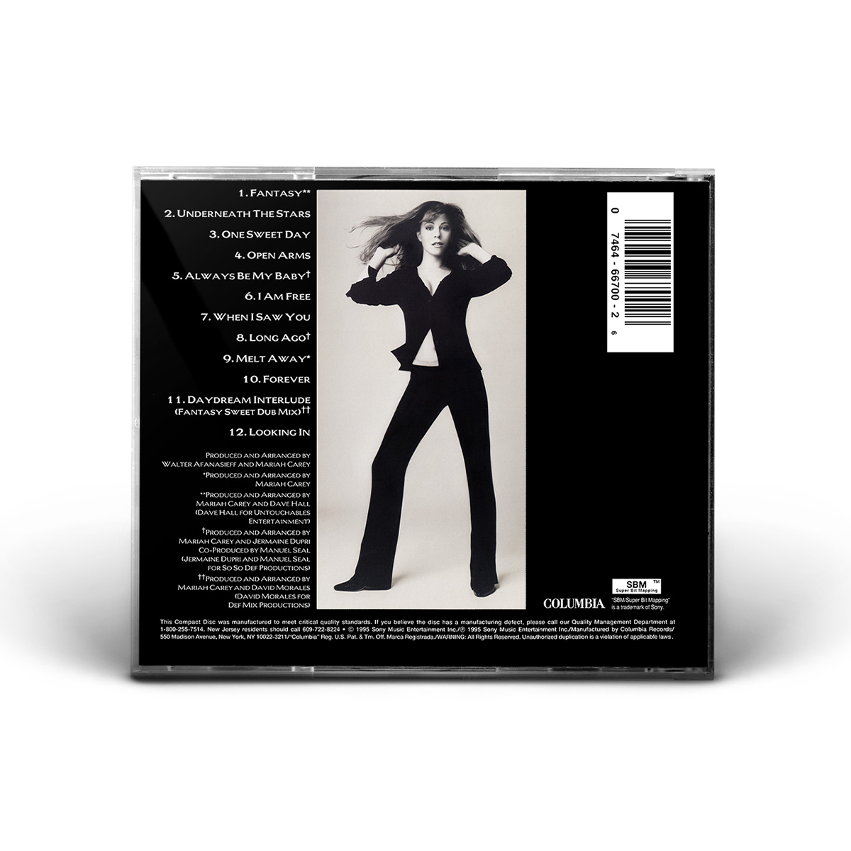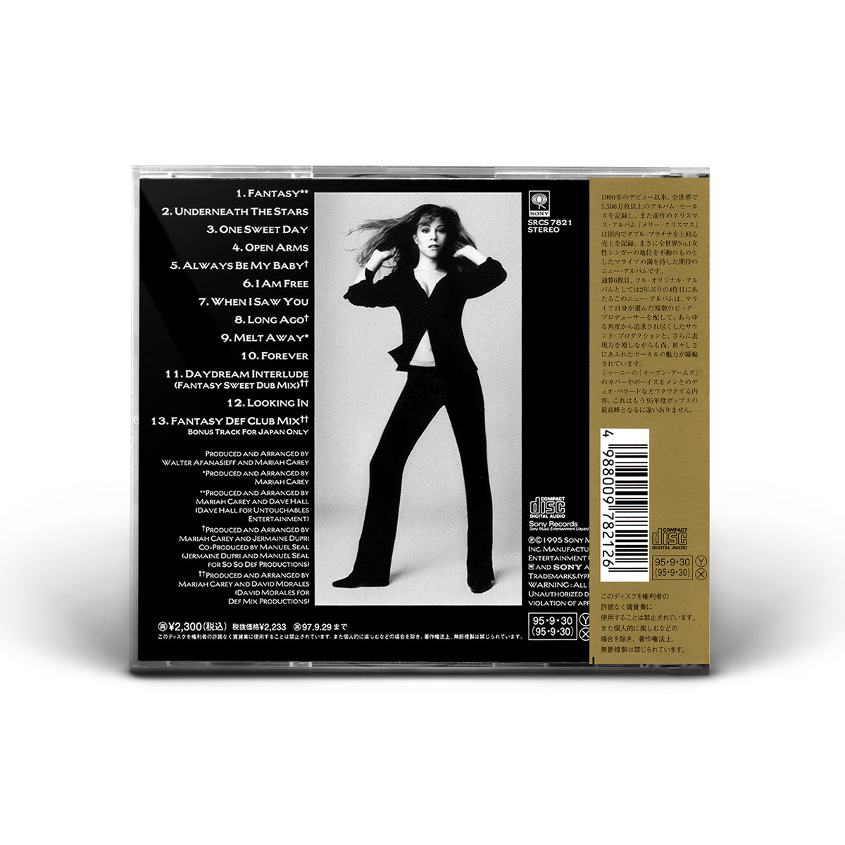 Daydream was issued on CD, Cassette, MiniDisc and — exclusively in Europe — 12" vinyl. In Japan, the album was available on CD and MiniDisc, featuring a slightly different front cover and the Radio Mix of “Fantasy” (listed as Def Club Mix) as a bonus track.