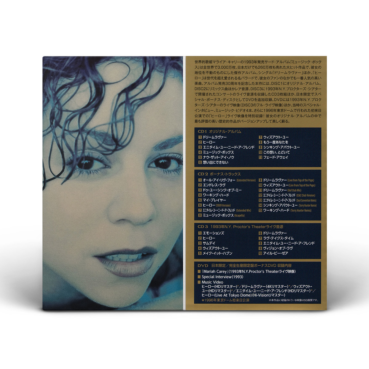 In 2023, to commemorate the 30th anniversary of Music Box, the digital version of the album was updated on September 8 with fifteen additional bonus tracks including two previously-unreleased songs: “Workin' Hard,” and a cover of the 1939 song “My Prayer.” Previously-unreleased bonus tracks also include the 2009 version of “Hero,” the live versions of “Dreamlover” and “Without You” from Mariah's appearances on Top Of The Pops, an extended version of “All I Live For,” from Mariah's 2020 release The Rarities, an acapella version of the album's title track, new remixes of “I've Been Thinking About You” and “Workin' Hard,” an extended version of “Anytime You Need A Friend,” as well as remastered HQ audio from Mariah's 1993 concert at Schenectady's Proctor's Theatre. This expanded version of Music Box was also released on 3XCD and 4XLP.