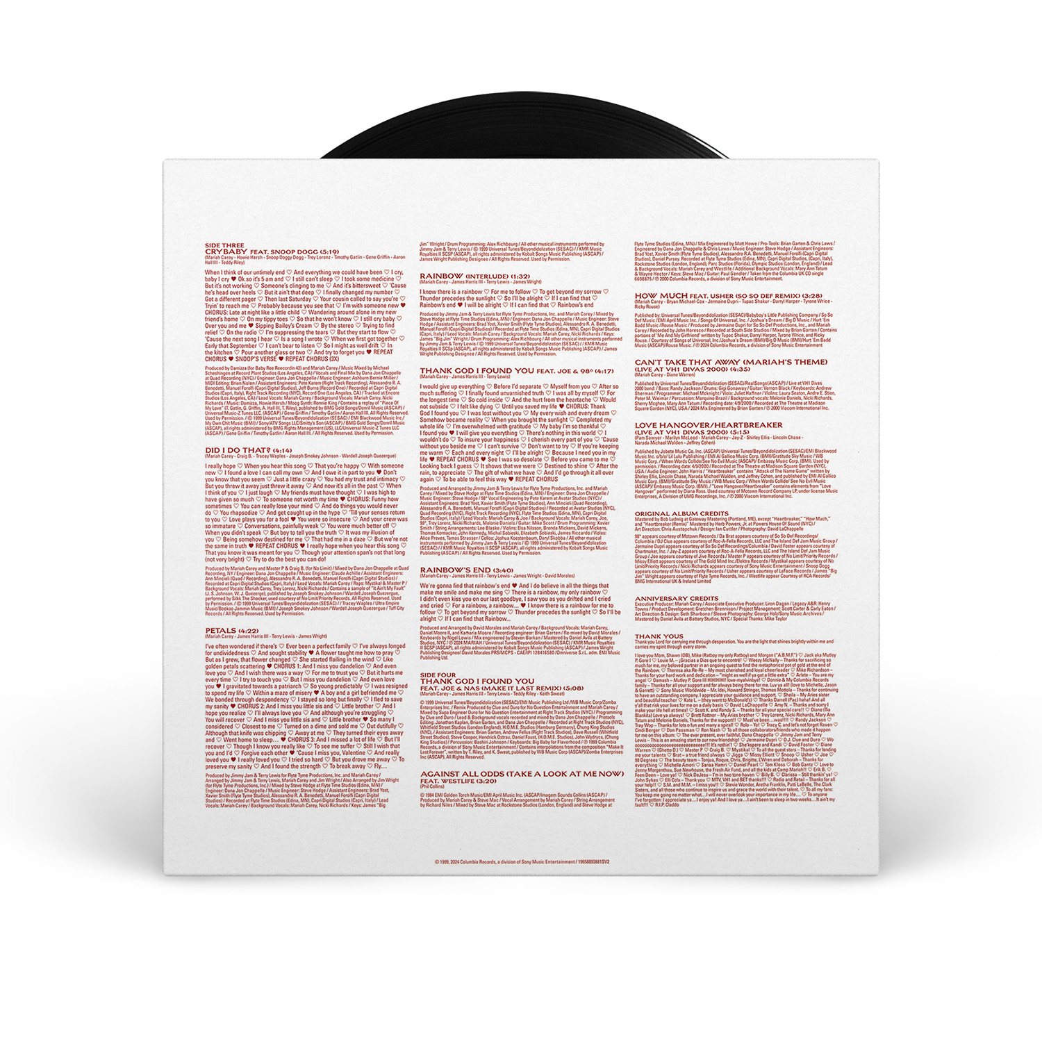 In 2024, to commemorate Rainbow's 25th anniversary, the digital version of the album was updated with fourteen additional bonus tracks including a brand new remix of the “Rainbow” interlude, titled “Rainbow's End” and co-produced by Mariah and David Morales, the previously-unreleased So So Def remix of “How Much,” the acapella version of “Bliss,” a previously-unreleased Mariah-only version of “Thank God I Found You,” as well as the song “There For Me,” previously available only as a B-side on the “Never Too Far / Hero Medley” CD single released in 2001.