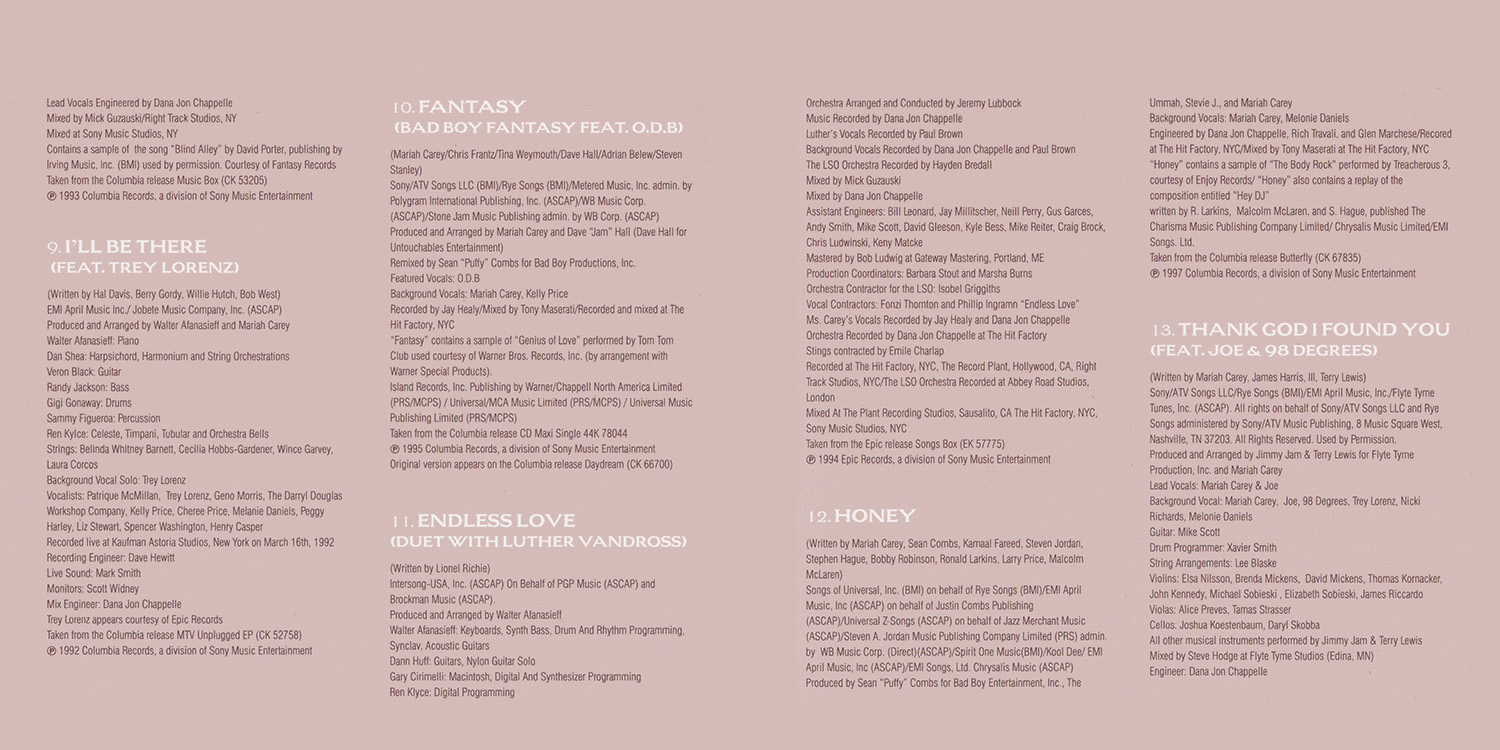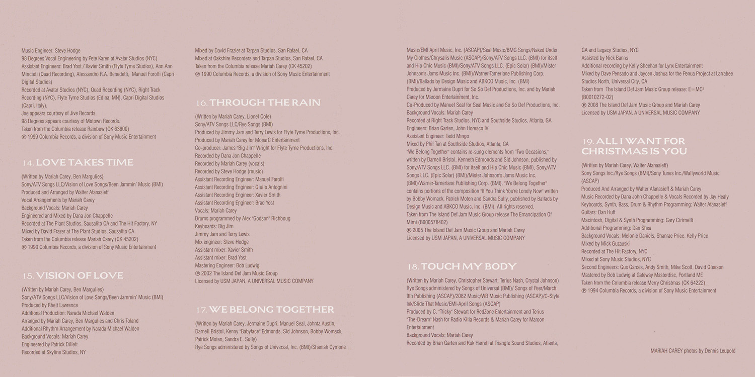 Produced by Mariah Carey and Walter Afanasieff. Co-produced by Dave “Jam” Hall. |