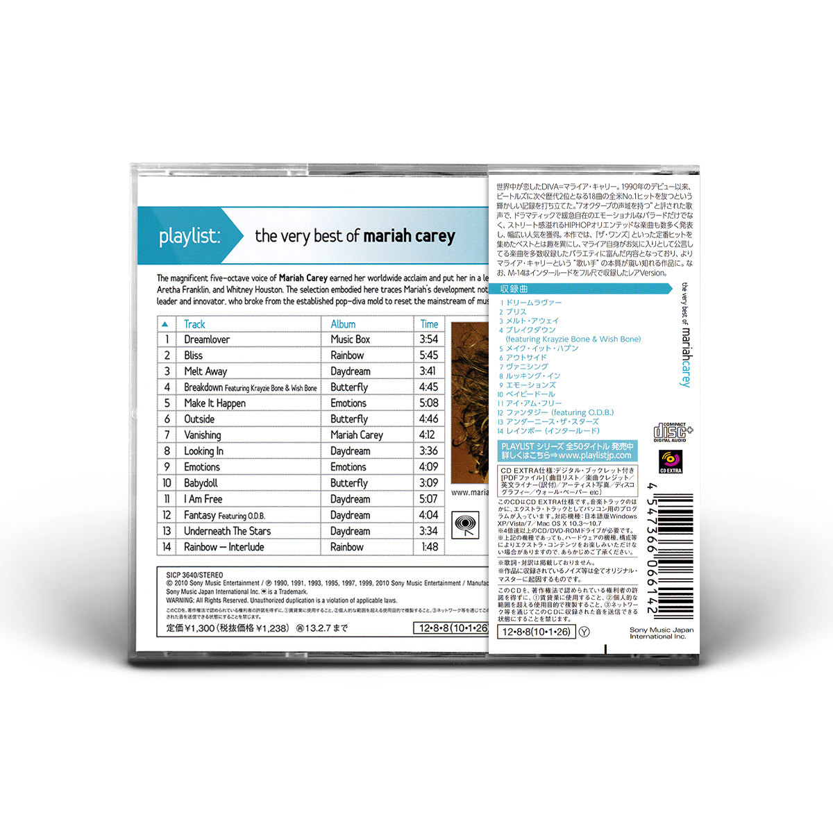 Playlist: The Very Best Of Mariah Carey is a collection of fourteen remastered songs released by Sony Music's Legacy Recordings division on January 26, 2010. Even though the compilation consists of previously released material, the song “Looking In” features additional vocals that were not included on the original version, and “Rainbow (Interlude)” is slightly longer compared to the version included on the Rainbow album.