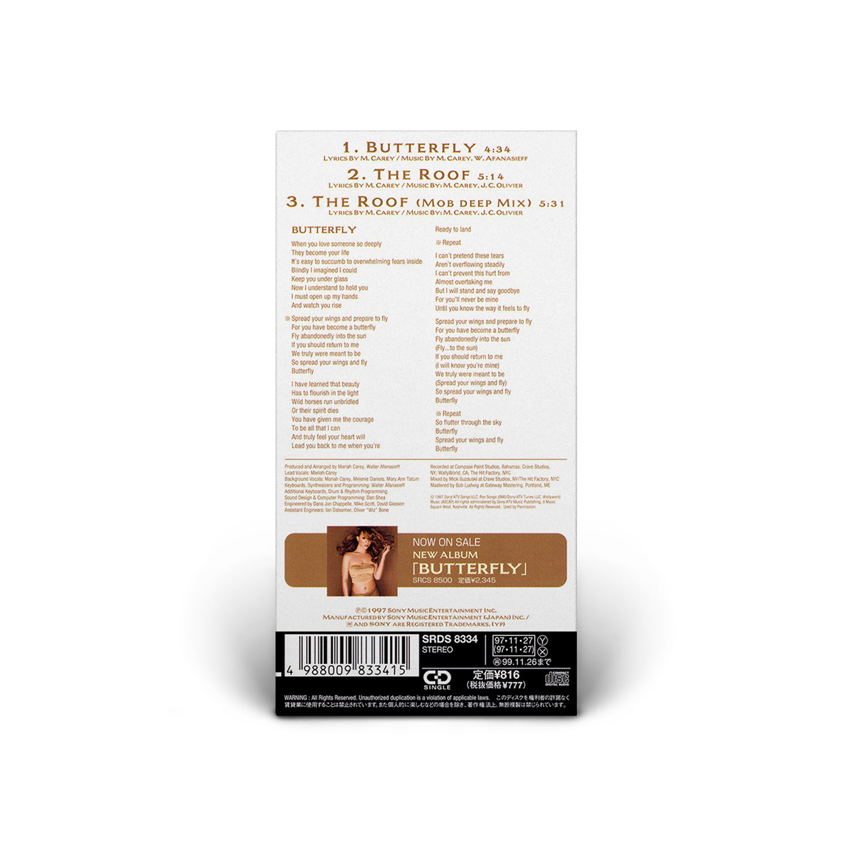 The Japanese “Butterfly” 3" CD single was released on November 27, 1997, and features two versions of “The Roof” as bonus tracks: Album Version and Mobb Deep Mix.