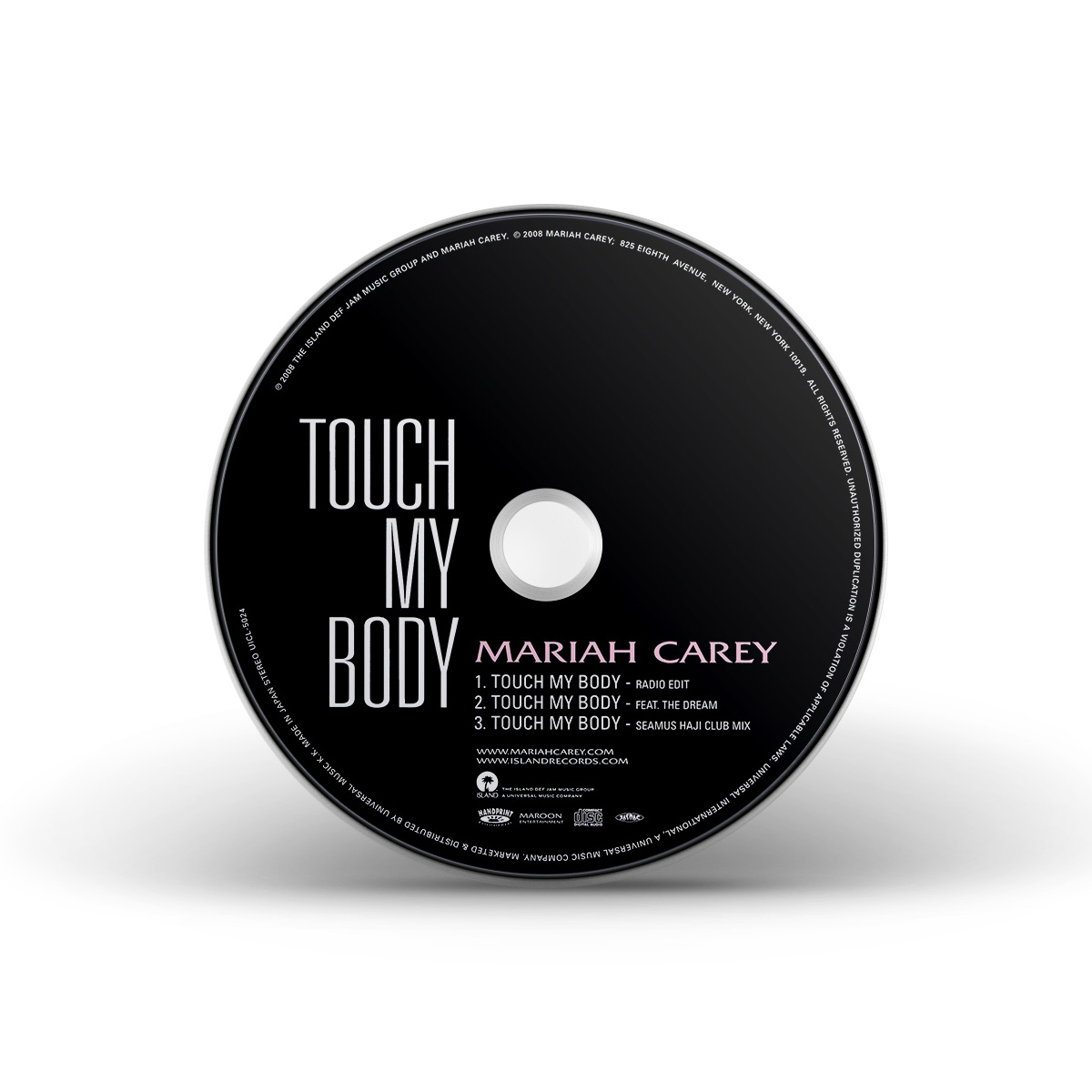 The European “Touch My Body” CD Single features the Radio Edit and the Seamus Haji Radio Edit of the song, while the Maxi Single — an enhanced CD — includes the Radio Edit, the Remix featuring The-Dream, the Seamus Haji Club Mix and the “Touch My Body” music video.