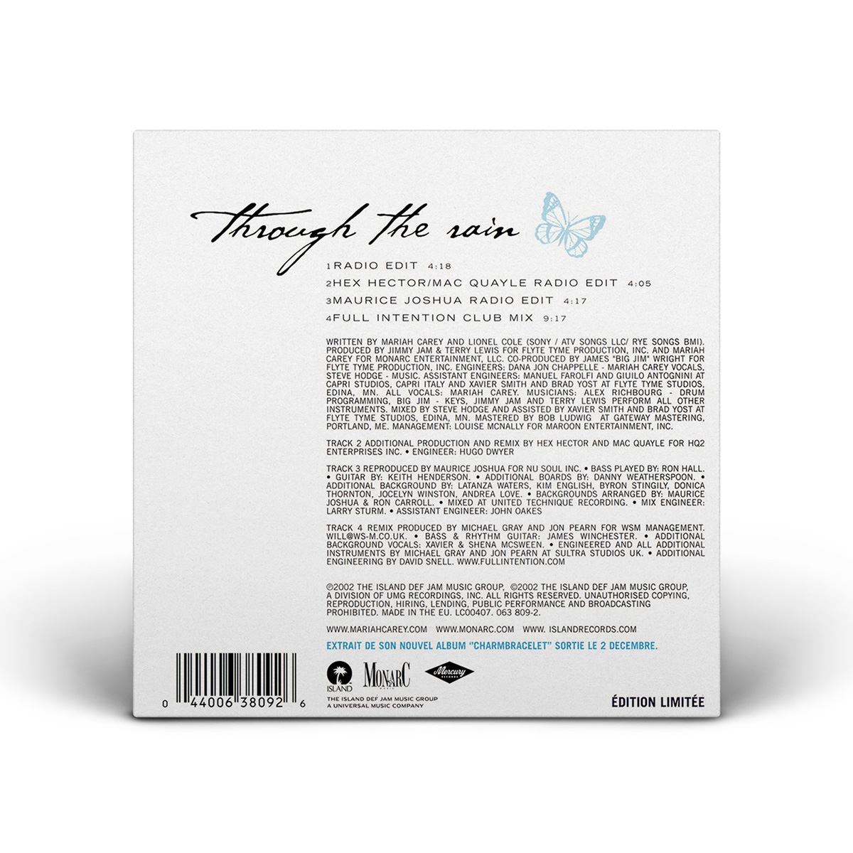 The Japanese “Through The Rain” CD Maxi Single includes the Album Version, the Remix featuring Kelly Price and Joe, the Full Intention Radio Edit and the Boris & Michi's Radio Mix of the song.