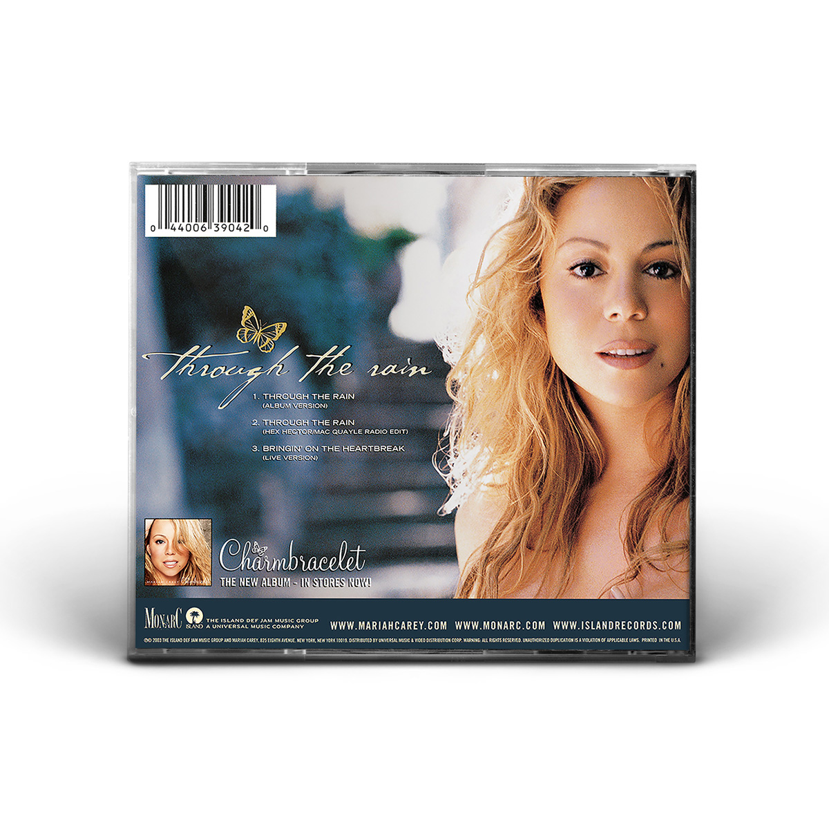 “Through The Rain” became available in Europe on November 11, 2002. The CD Single contains the Album Version and the Remix featuring Kelly Price and Joe, while the first Maxi Single includes two additional remixes: Full Intention Radio Edit and Boris & Michi's Radio Mix. A second CD Maxi Single was also issued, containing four versions of “Through The Rain”: Radio Edit, Hex Hector / Mac Quayle Radio Edit, Maurice Joshua Radio Edit and Full Intention Club Mix.