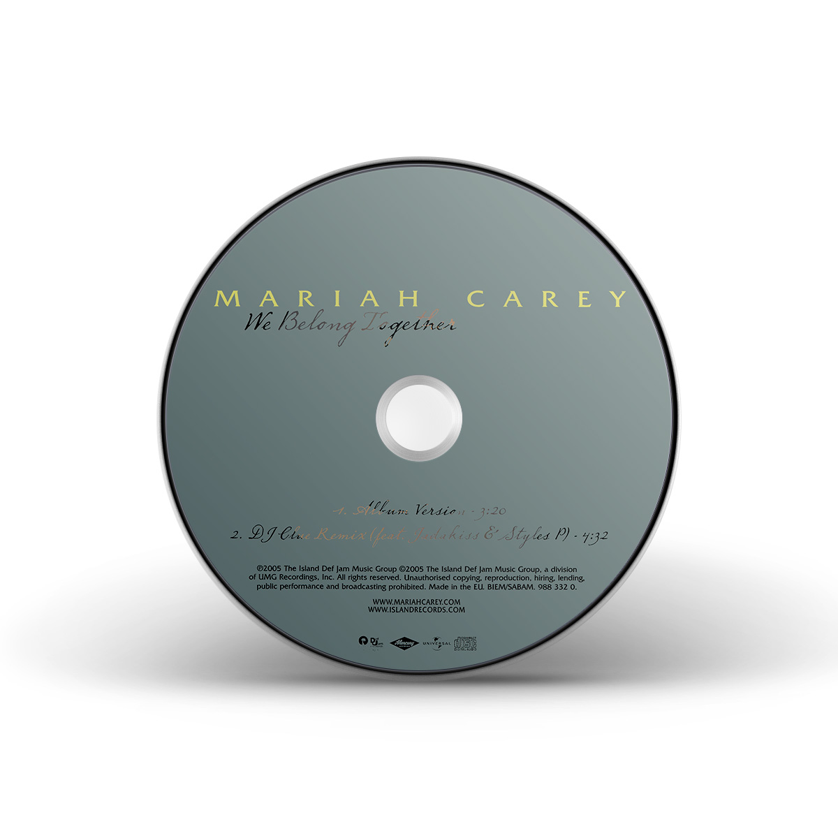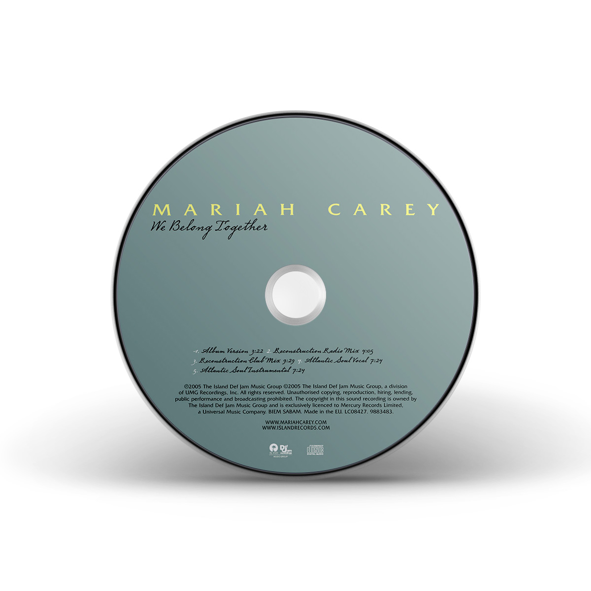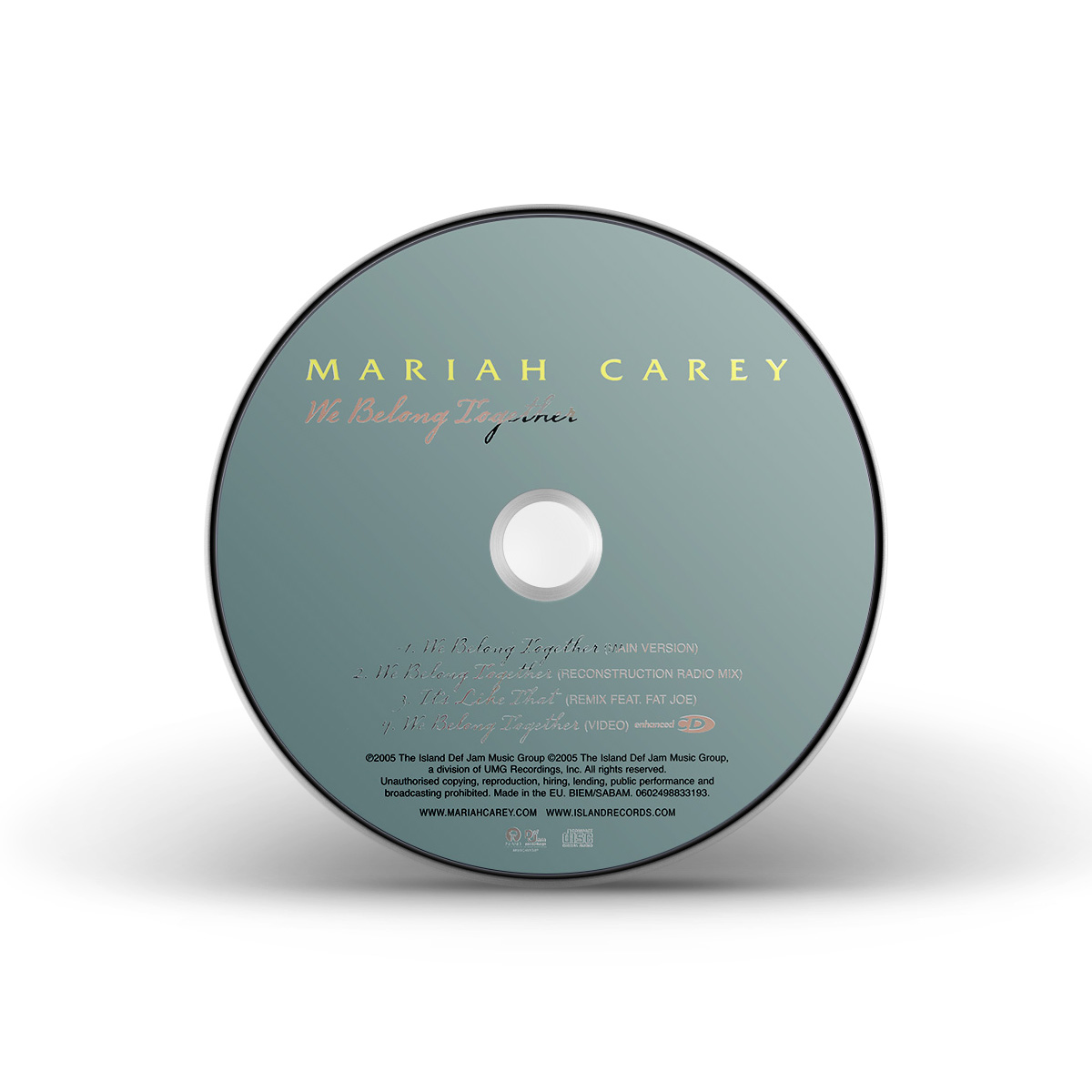 Released on June 26, 2005, the European “We Belong Together” CD Single was issued in cardboard sleeve including the Album Version and the DJ Clue Remix of the song. The Maxi Single was as Enhanced CD including the song's Album Version and the Reconstruction Radio Mix; the Scott Storch Remix of “It's Like That,” and the “We Belong Together” music video.