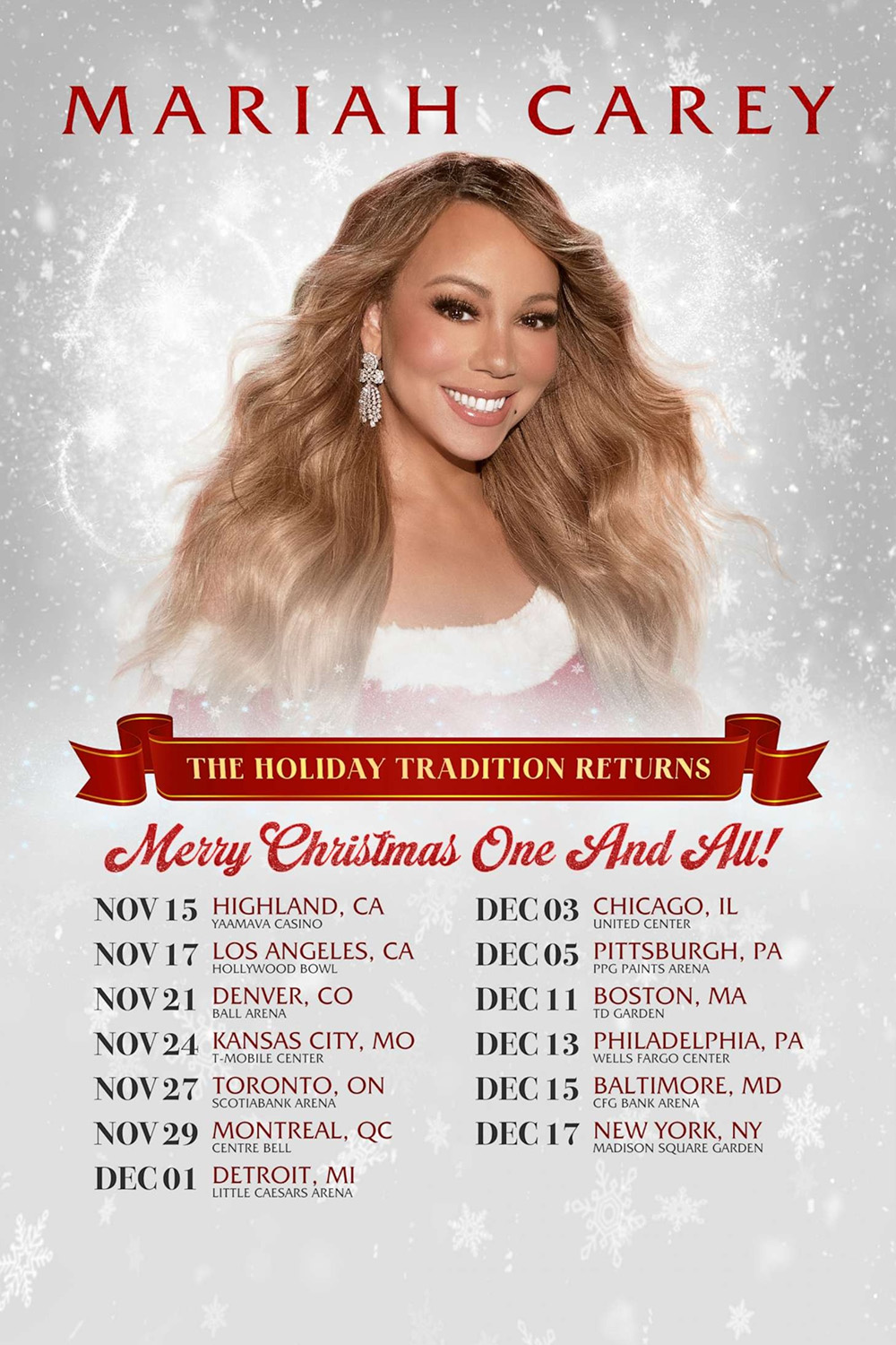 The Merry Christmas One And All! tour was announced on October 2, 2023, and kicked off in California on November 15. The sixteen stop of the Merry Christmas One And All! tour saw Mariah touring the United States and Canada, wrapping up at New York City's Madison Square Garden on December 17.