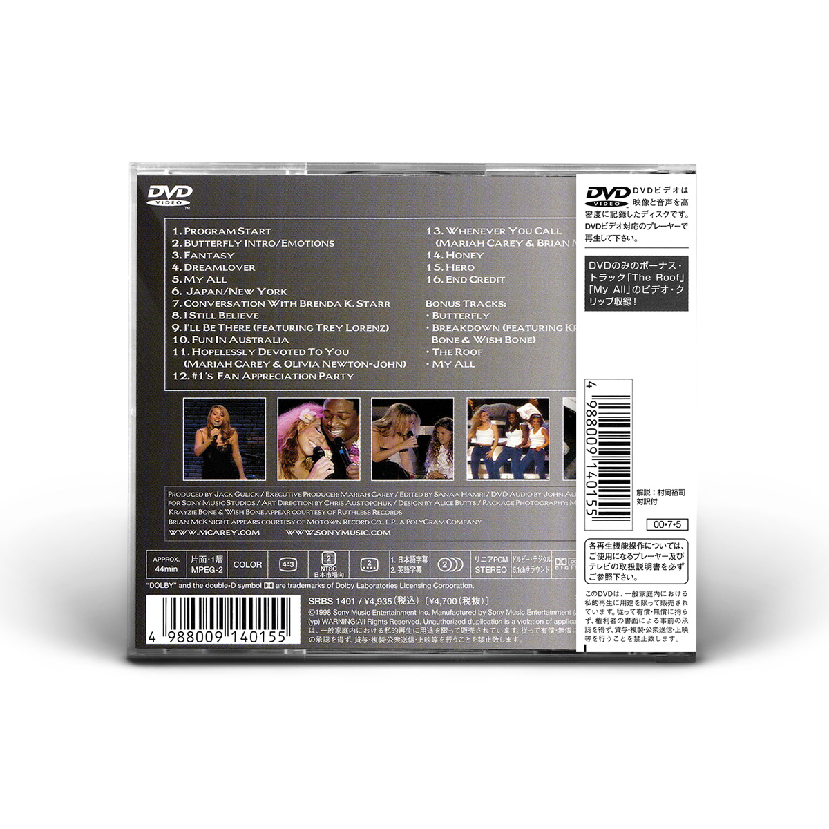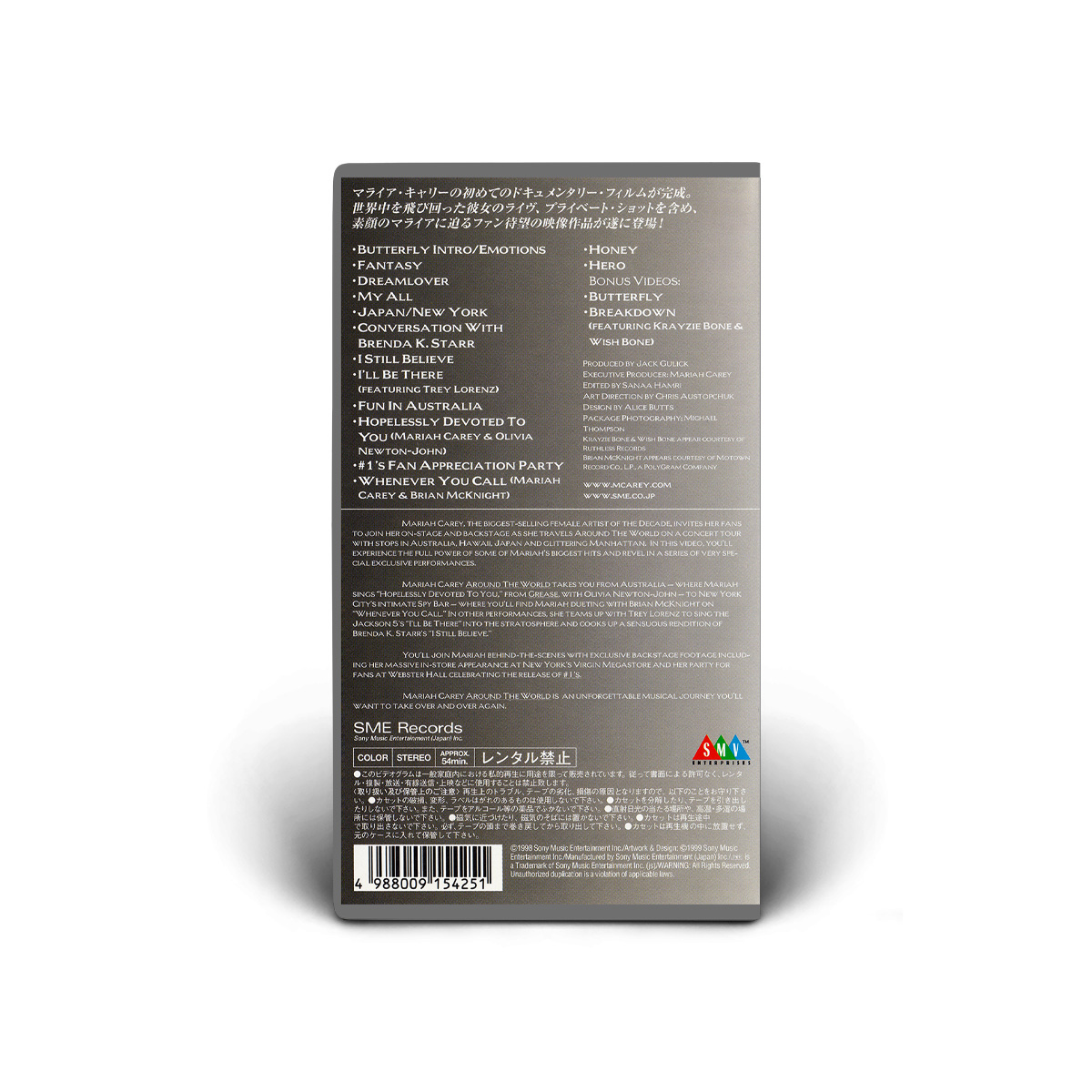 The home video also includes two performances at New York's intimate Spy Bar: “I Still Believe” and “Whenever You Call,” with Brian McKnight; as well as backstage footage from Mariah's massive in-store appearance at New York's Virgin Megastore and her party for fans at Webster Hall celebrating the release of #1's.