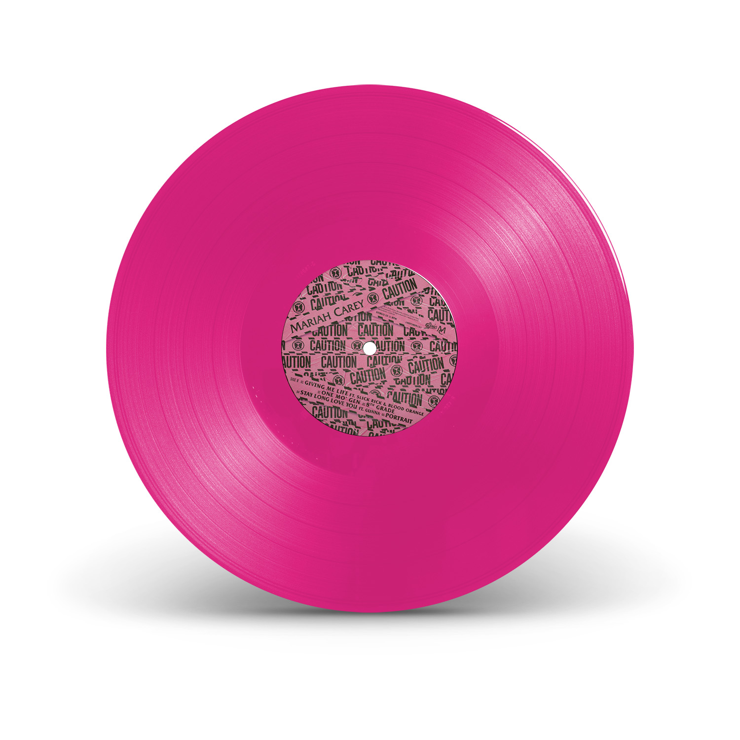 Four Caution variants were available on 12" vinyl: black vinyl, picture disc vinyl, translucent hot pink vinyl with three lithographs, and a blue vinyl, available exclusively through Barnes & Noble.