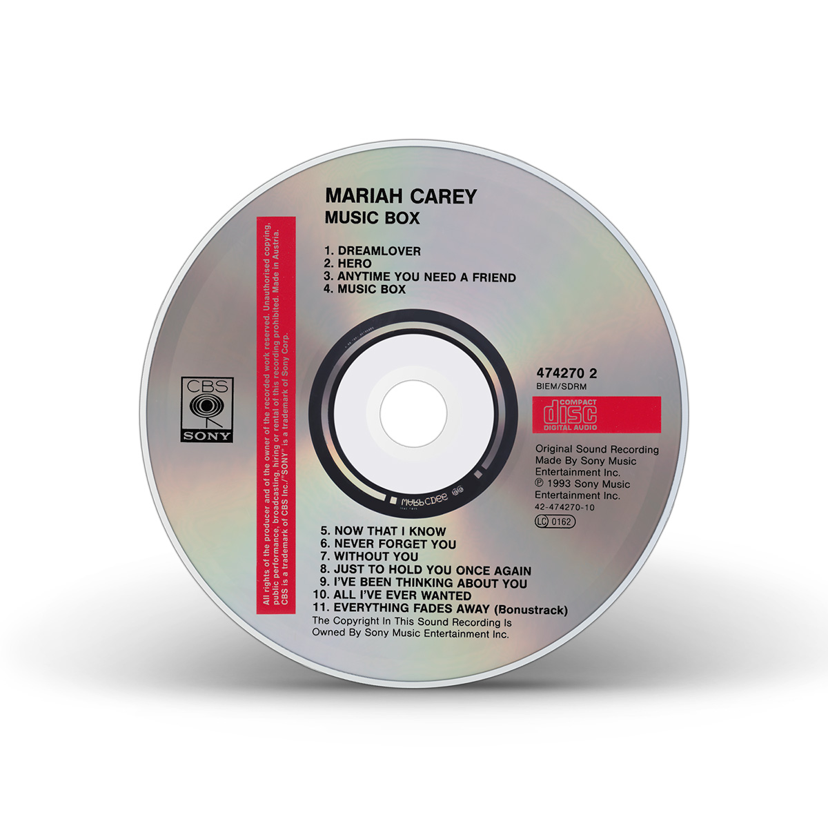 International editions of Music Box include the bonus track “Everything Fades Away,” composed by Mariah Carey and Walter Afanasieff. The album was later re-released in Spain and Latin America to include “Héroe,” the Spanish version of “Hero.”