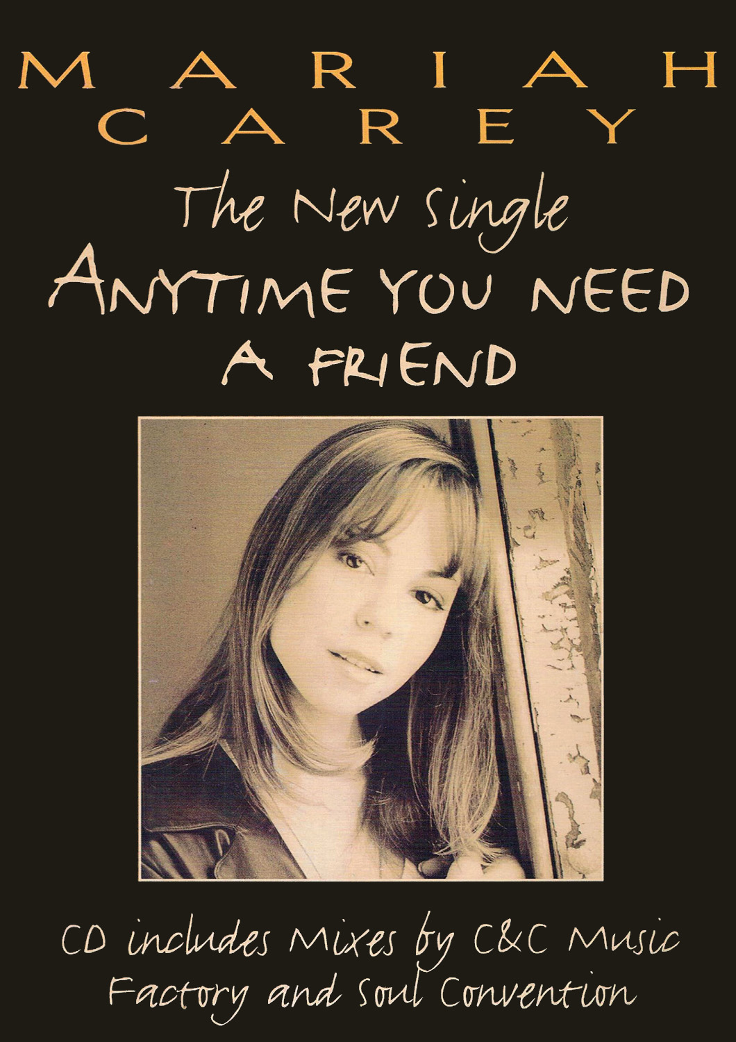 “Anytime You Need A Friend” was released as the fourth single from Mariah's Music Box album on May 31, 1994. “The song ‘Anytime You Need A Friend’ definitely has a gospel influence. I love the vocal arrangements in gospel music and I love background vocals, so it was a really fun song to do in the studio,” Mariah said. “Actually, It sounds like a huge choir singing on it on the record, but it's mostly these three girls that have been working with me: the Price sisters and Melonie Daniels. It was a great experience to work with them and to do these gospel arrangements because they're really from the church and they're really really authentic, so it's definitely one of my favorite songs on the album.”