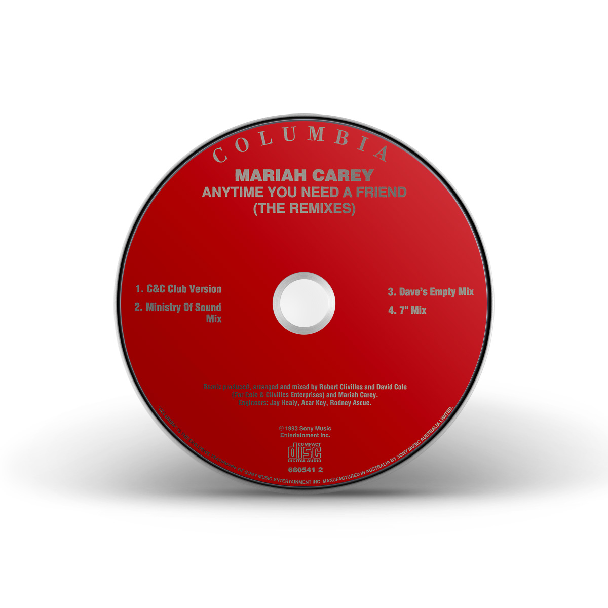 Mariah recorded new vocals for the “Anytime You Need A Friend” dance mixes, which topped the Billboard Dance Club Songs chart on August 27, 1994. Cory Rooney and Mark Morales produced both the Stringapella and the Soul Convention remixes of the song. An extended mix of the song became available as a bonus track on the 30th Anniversary Digital Expanded Edition of the Music Box album.