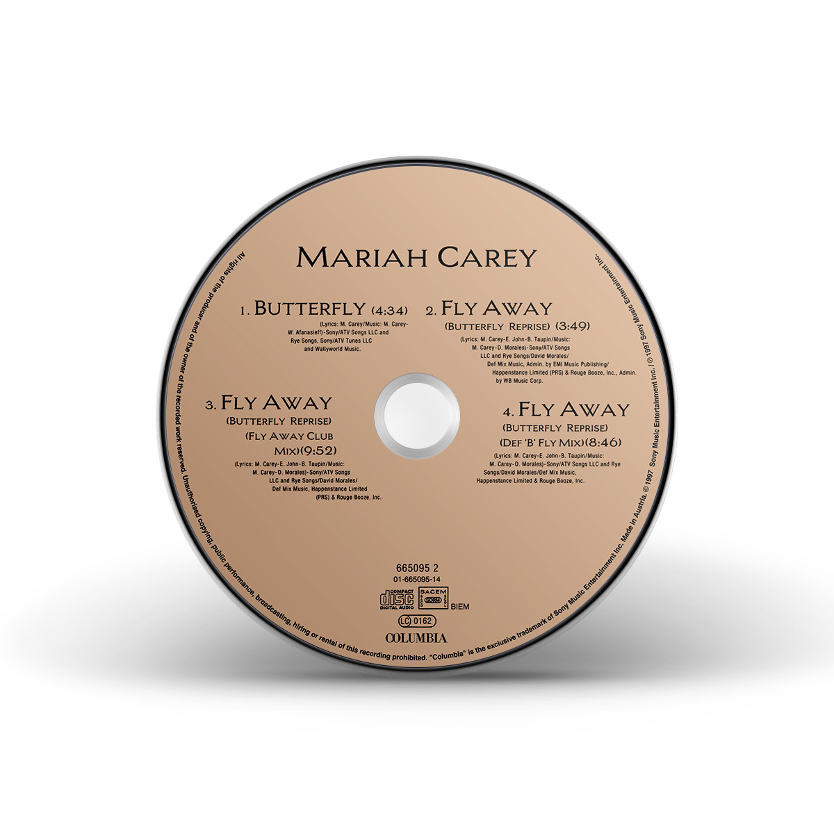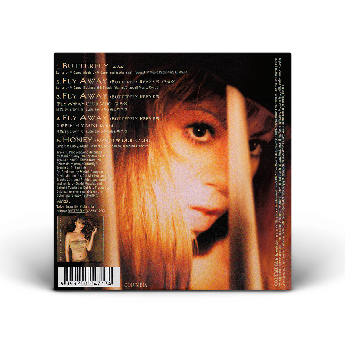 In Australia, “Butterfly” was released on CD and Cassette, both including the Album Version of the song, three versions of “Fly Away (Butterfly Reprise)” (Album Version, Fly Away Club Mix and Def ‘B’ Fly Mix), and the Morales Dub Mix of “Honey.”