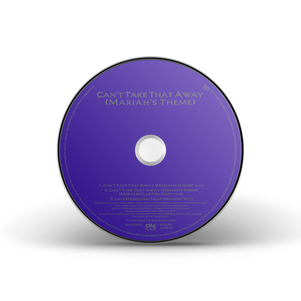 Released in Europe in late February 2001, the CD single includes the Radio Edit and the Morales Club Mix Edit of the song, while the CD Maxi single features three remixes by David Morales. “Can't Take That Away (Mariah's Theme)” was also released on 12" vinyl in Europe, including four Morales remixes as well as the album version of the song.