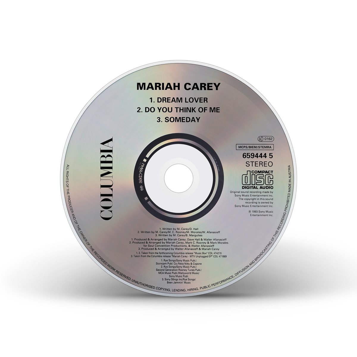 The European “Dreamlover” Single, including “Do You Think Of Me” as the B-side, was available on CD, Cassette and 7" Vinyl. There were two “Dreamlover” Maxi Singles, the first one featuring the two songs from the Single as well as the live version of “Someday” from Mariah's MTV Unplugged. The second “Dreamlover” Maxi Single was available on CD and 12" Vinyl and includes the Album Version of the song plus the Def Club Mix and Eclipse Dub remixes, as well as “Do You Think Of Me.”